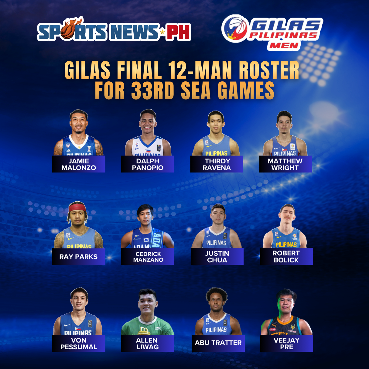The Samahang Basketbol ng Pilipinas (SBP) on Thursday, November 4, unveiled the final 12-man Gilas Pilipinas roster for the 2025 Southeast Asian Games in Bangkok. Thirdy Ravena, Cedrick Manzano, Dalph Panopio,
